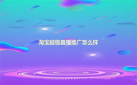 淘宝超级直播推广怎么样?淘宝直播推广有用吗?