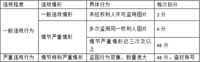 1.盗用同一权利人的图片,同一违规情形,三天内扣分只计一次;