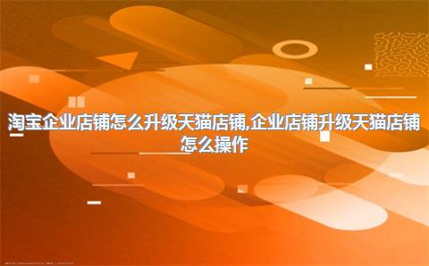 淘宝企业店铺如何升级为天猫店铺