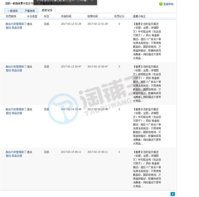 | 一般违规:0分严重违规0分售假违规0分 | |